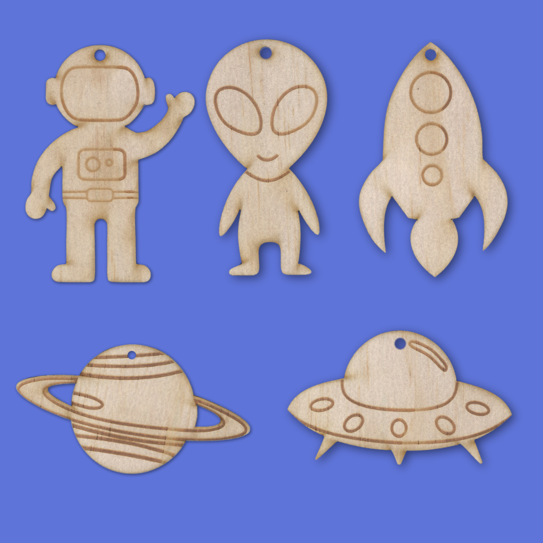Let your imagination explore the galaxy as you bring these wooden characters to life with your favourite colours and designs. Perfect for parties, craft days, or as a special gift for any space enthusiast!